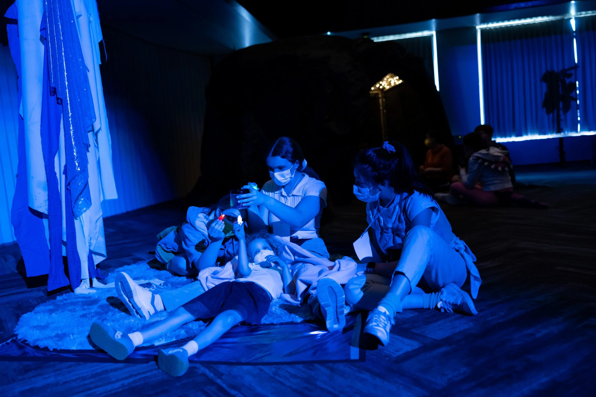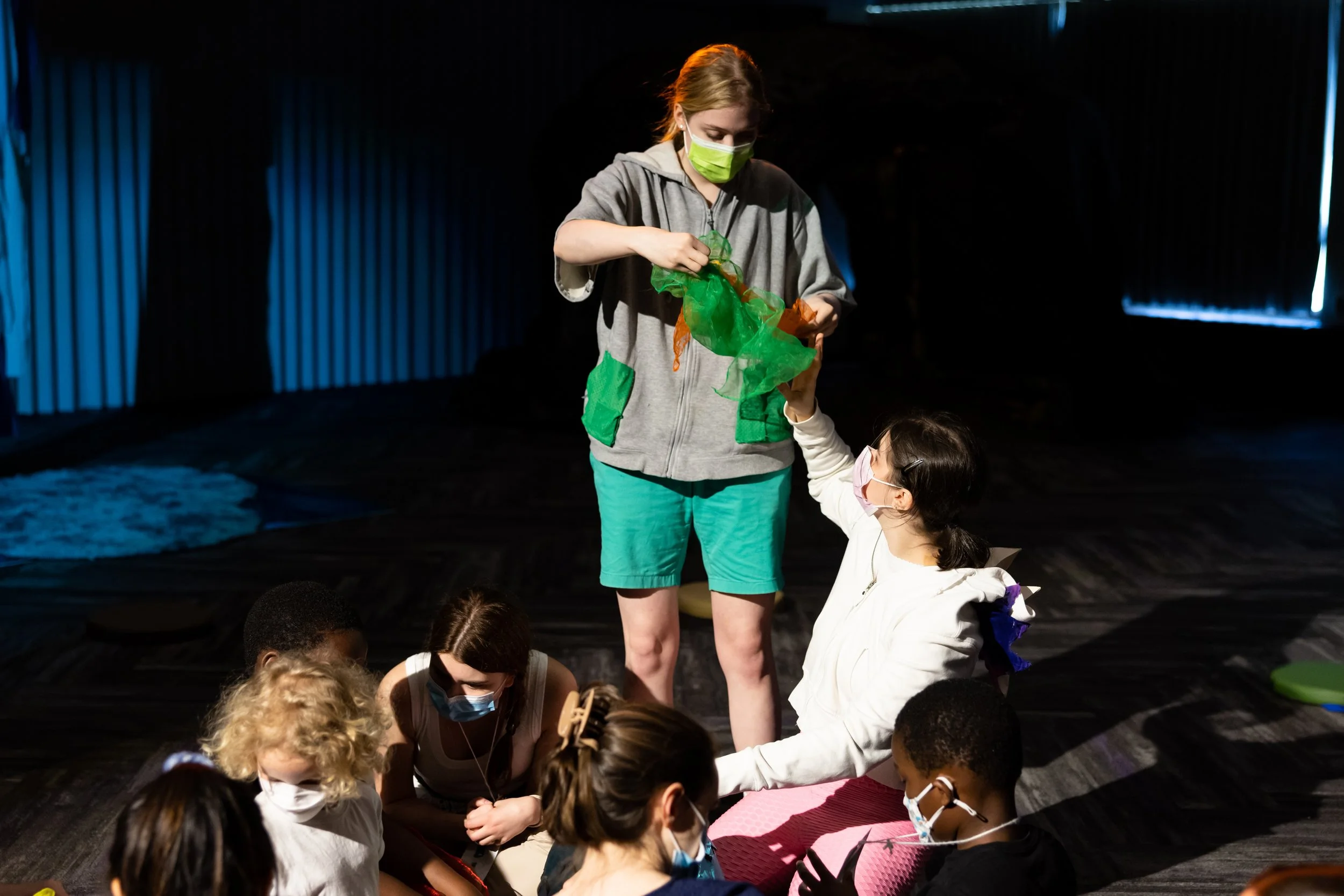 With Seesaw Theatre, I helped produce original, multi-sensory theatre specifically designed for disabled young audiences. As Head Adventure Guide, I collaborated closely with directors and ensembles to prepare casts to meaningfully engage with hundreds of audience members requiring varied access needs. I participated throughout rehearsals as an advocate for immersive accessibility, ensuring each performance was welcoming, responsive, and joyful. I also performed as Ty the T-Rex in Dino-Mite Dig, a cast-devised production grounded in inclusive storytelling.